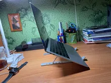 Подставка удобная, компактная. В комплекте был чехол серого цвета, теперь подставку будет удобно брать с собой. В сложенном виде занимает мало места. Резиновые противоскользящие накладки позволяют не царапать столешницу и ноутбук. Мой ноутбук Asus, размер 15.6", вес 2.7 кг. Подставка прочная, чтобы сломать придется приложить силы. Раньше подкладывала под ноутбук папку с журналами "100 человек, которые ..." чтобы ноутбук не перегревался. Теперь мой стол выглядит аккуратнее. Но .... есть минус. Стало безумно не удобно передвигать ноутбук по столешнице в разные стороны, с подставкой не скользит. Продавца рекомендую!
